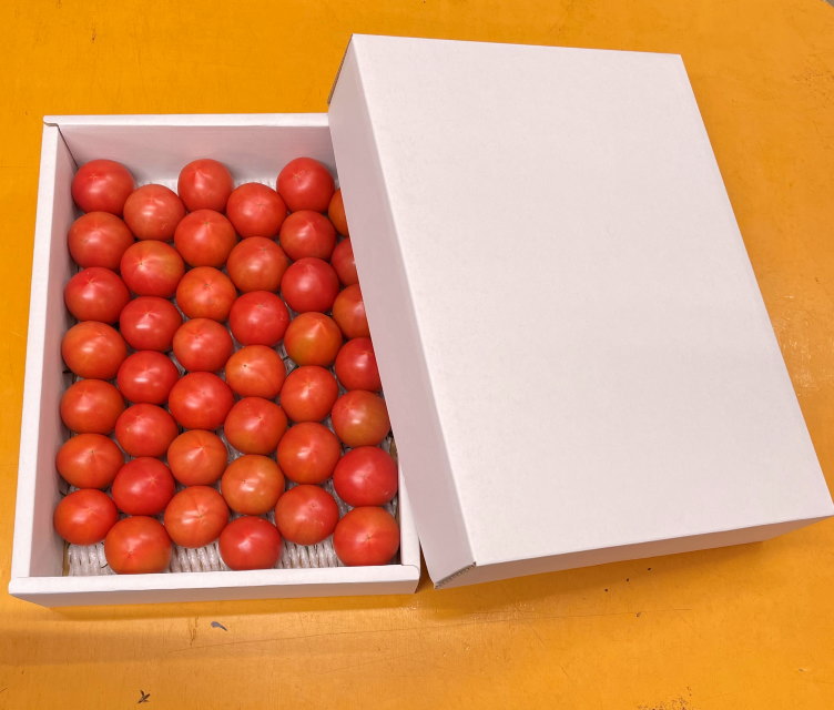 普通とまとの表示は大きさや重さがまちまちの為キロ表示は難しく、 「 定数 」 とか 「 ○○個入 」という風に表示します。